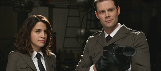 The Middleman is about, well, the Middleman (Matt Keeslar), his Middle Apprentice Wendy Watson (Natalie Morales), and sassy and surly robot Ida (Mary Pat Gleason), who are all employed by a super secret organization intent on keeping the world safe from the bizarre, comic book-type evils that the general public know nothing about. To this end, Wendy keeps her job secret from her best friend and roommate Lacey Thornfield (Brit Morgan), her eventual boyfriend Tyler Ford (Brendan Hines), friend Noser (Jake Smollett), enemy Pip (Drew Tyler Bell), and fellow building resident and mostly friend even though he has a weird fixation with phallic sculpture Joe 90 (Sean Davis). The Middleman and Wendy are occasionally helped by Roxy Wasserman (Elaine Hendrix), a reformed succubus who runs a half-way house for other succubi under the guise of a fashion house, and Wendy’s boyfriend Tyler later gets a job from Manservant Neville (Mark Sheppard), the CEO of Fatboy Industries, whose logo is all over the show and which I feel would have been a bigger deal had the show continued.