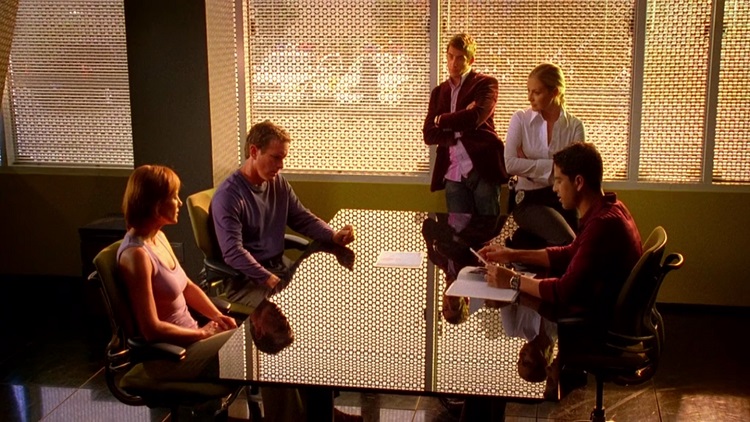 One of my favorite things about CSI:Miami is that starting in the second season, wardrobe started doing a little color matchy-matchy between characters. Calleigh’s shirt matching Frank’s tie. Delko and Speed wearing similar colored shirts. By the fourth season, it was full-tilt coordination. It seems like at least one character in each episode is guaranteed to match Frank’s tie. And there are some episodes when there’s obviously a color theme. Everybody sporting a shade of one color. It’s glorious.